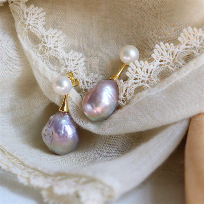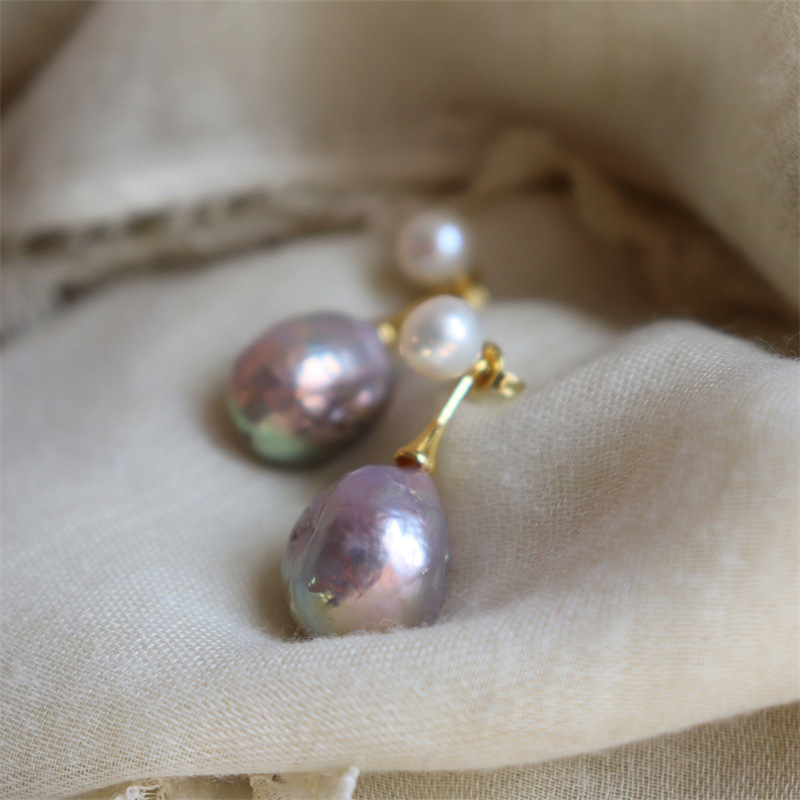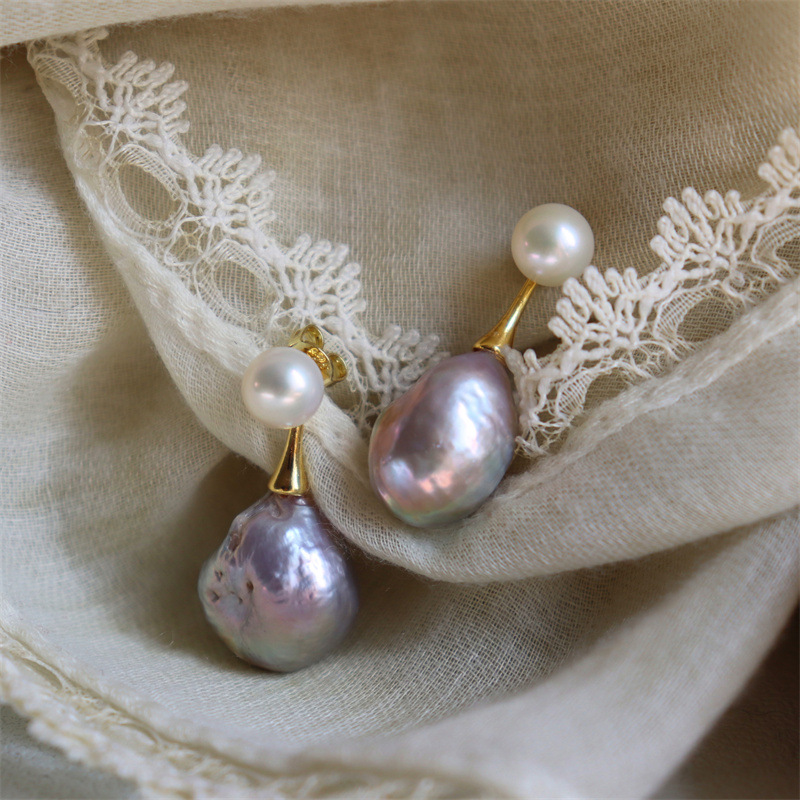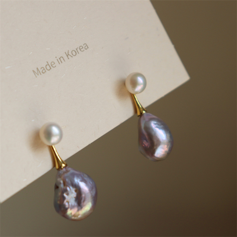 Baroque Pearl Earrings Dual-use Silver Earrings