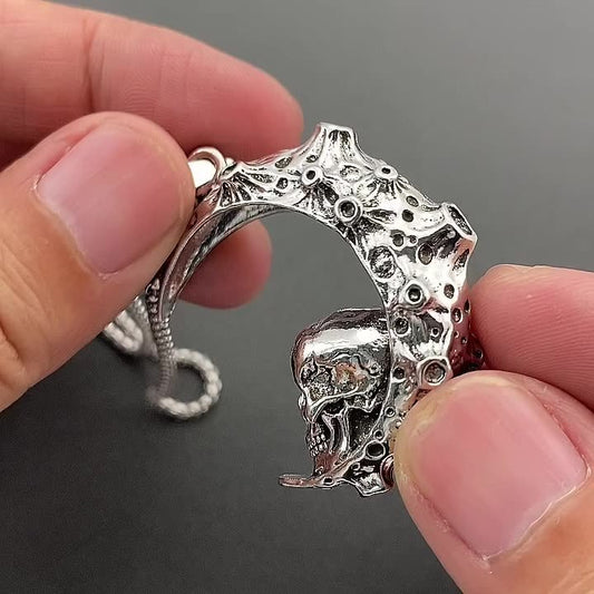Stainless Steel 3D Moon Skull Pendant Necklace