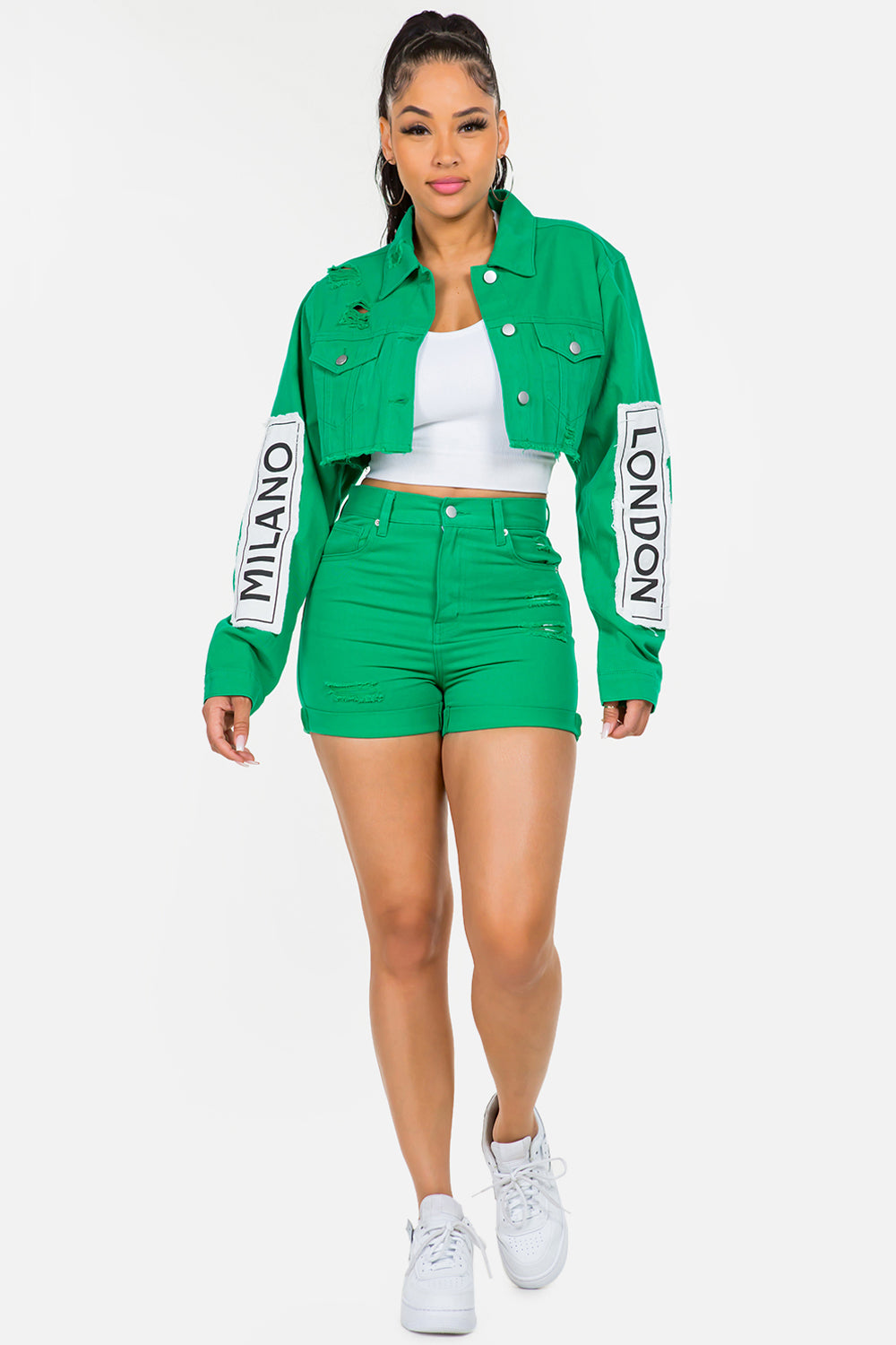 Make a fashion statement with these edgy High Waist Distressed Denim Shorts that exude a cool and casual vibe. The high waist design adds a touch of retro flair, while the distressed detailing gives a trendy and lived-in look. Perfect for adding a touch of rugged charm to your summer wardrobe, these shorts are both stylish and versatile. The high-quality denim fabric offers durability and comfort for all-day wear. Whether dressed up with a flowy blouse or paired with a graphic tee for a laid-back ensemble, these shorts are a must-have staple. Elevate your street style with the on-trend and effortlessly cool High Waist Distressed Denim Shorts.