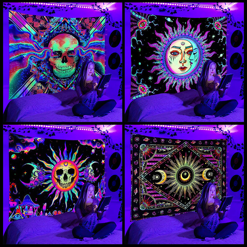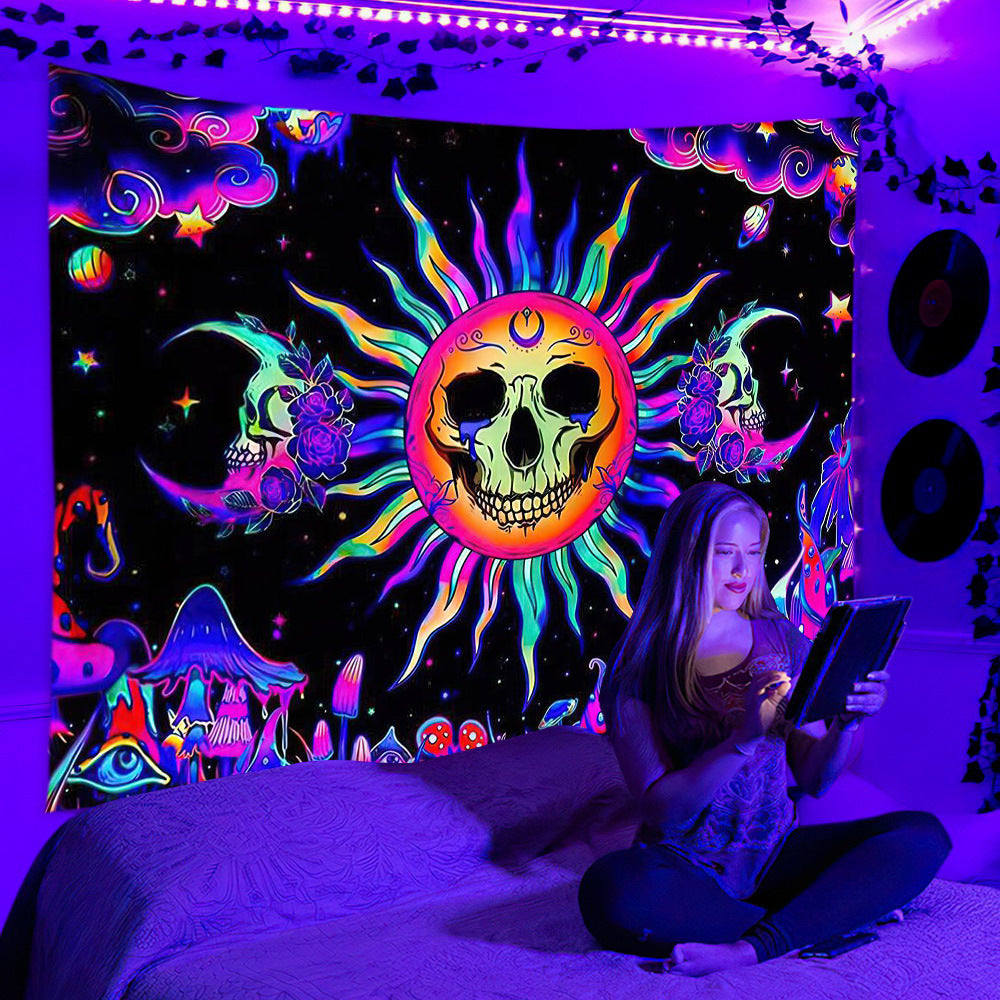 UV Fluorescent Night Glow Skeleton Sun Tapestry